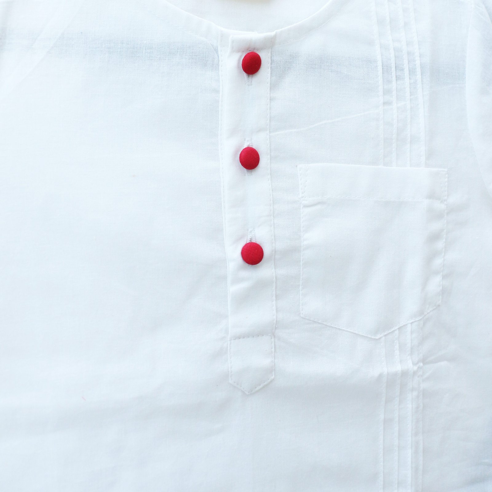 • This dashing 3-piece boys kurta set is crafted from comfortable Cotton 60-60 fabric for the kurta and trousers offering a soft and breathable feel.
