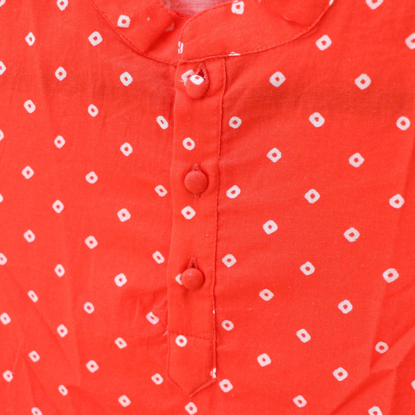 • Make a statement with this Bandhej Kurta Set in bold red. Made from comfortable Cotton 60-60, this fabric is perfect for casual and festive occasions.